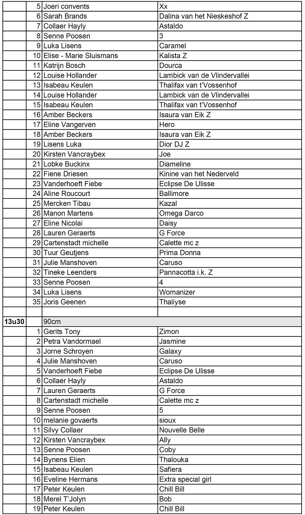 Op zaterdag 14 maart organiseren wij onze eerste outdoor oefenjumping volgens onderstaand schema: