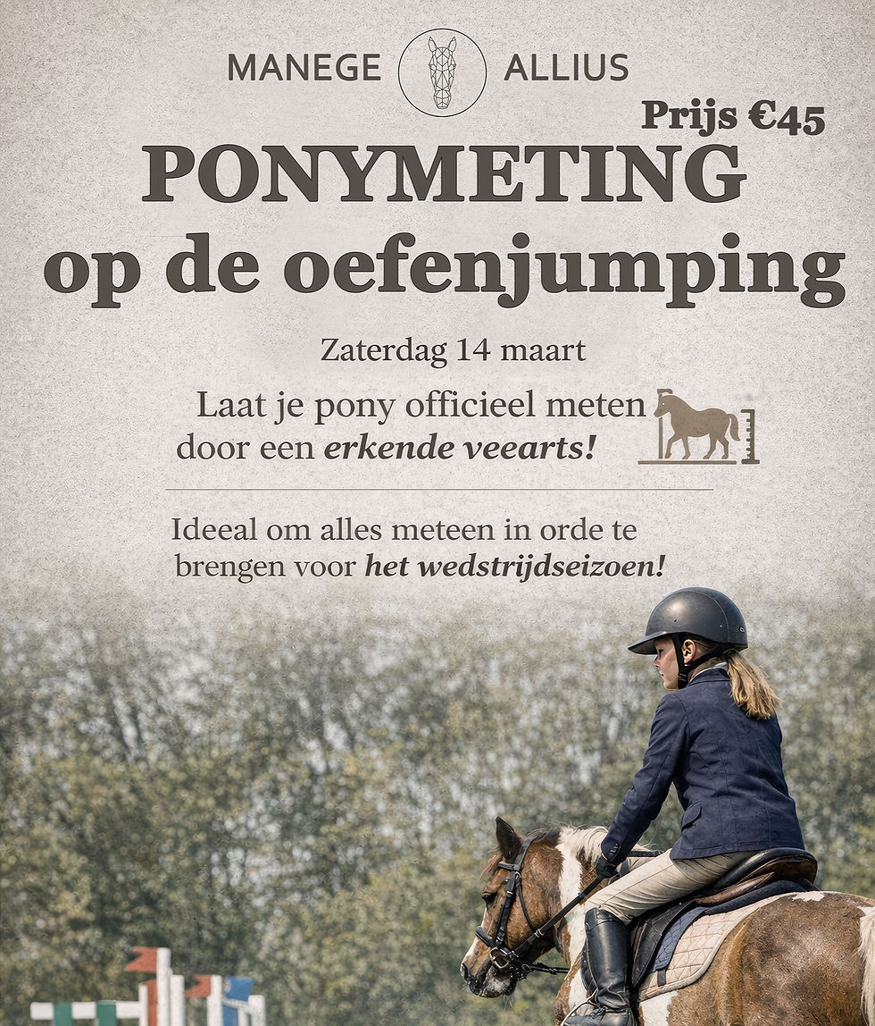 Op zaterdag 14 maart, tijdens onze eerste outdoor oefenjumping van het seizoen, is het mogelijk om je pony officieel te laten meten door een erkende veearts.